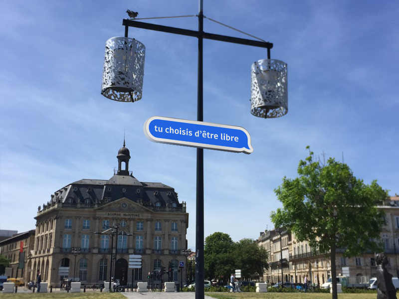 Dispositif innovant au service de la valorisation de la bienveillance, de l’art contemporain et du patrimoine urbain, l'installation est interactive et participative. L’installation ne nous transforme-t-elle pas, à notre tour, en oeuvre d'art positive ?
