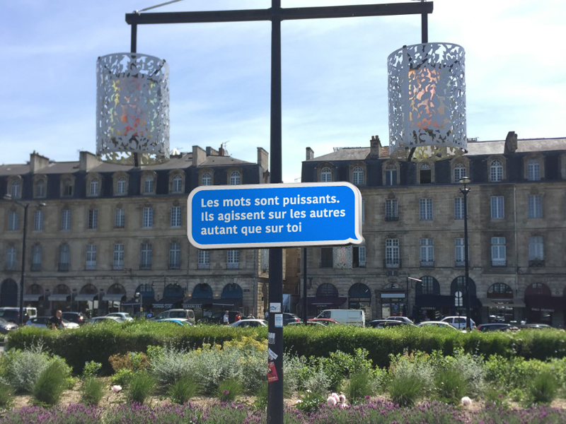Mêlant art contemporain et communication positive, "bienveillance concept" est un projet implanté au cœur de la ville. L’installation interpelle le regardeur dans son environnement quotidien, par un message dépourvu d’injonction ou de proposition commerciale et permet d’accéder à une réflexion positive.